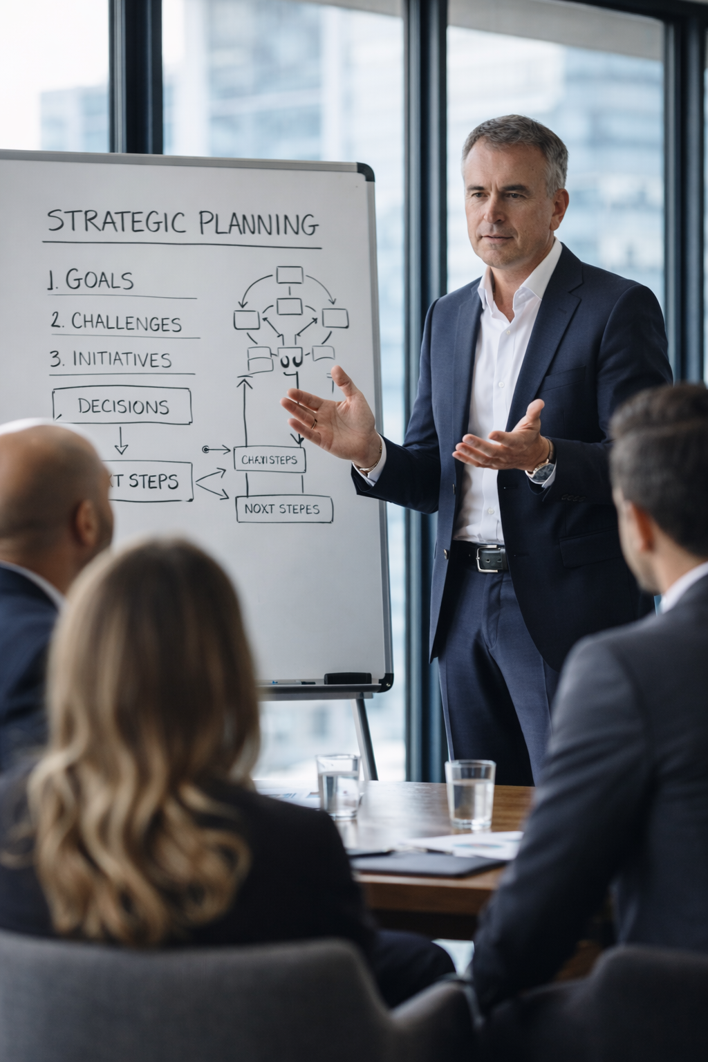 Jag är inte där för innehållet i sakfrågan. Jag är där för att säkerställa kvaliteten i tänkandet, samtalet och beslutsprocessen. Det gör att grupper kommer längre, snabbare – och med bättre beslut som faktiskt går att genomföra.